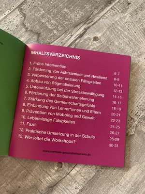 Unsere Mission für 'Mentale Gesundheit in der Schule', haben wir in einer kleinen Broschüre zusammengefasst.